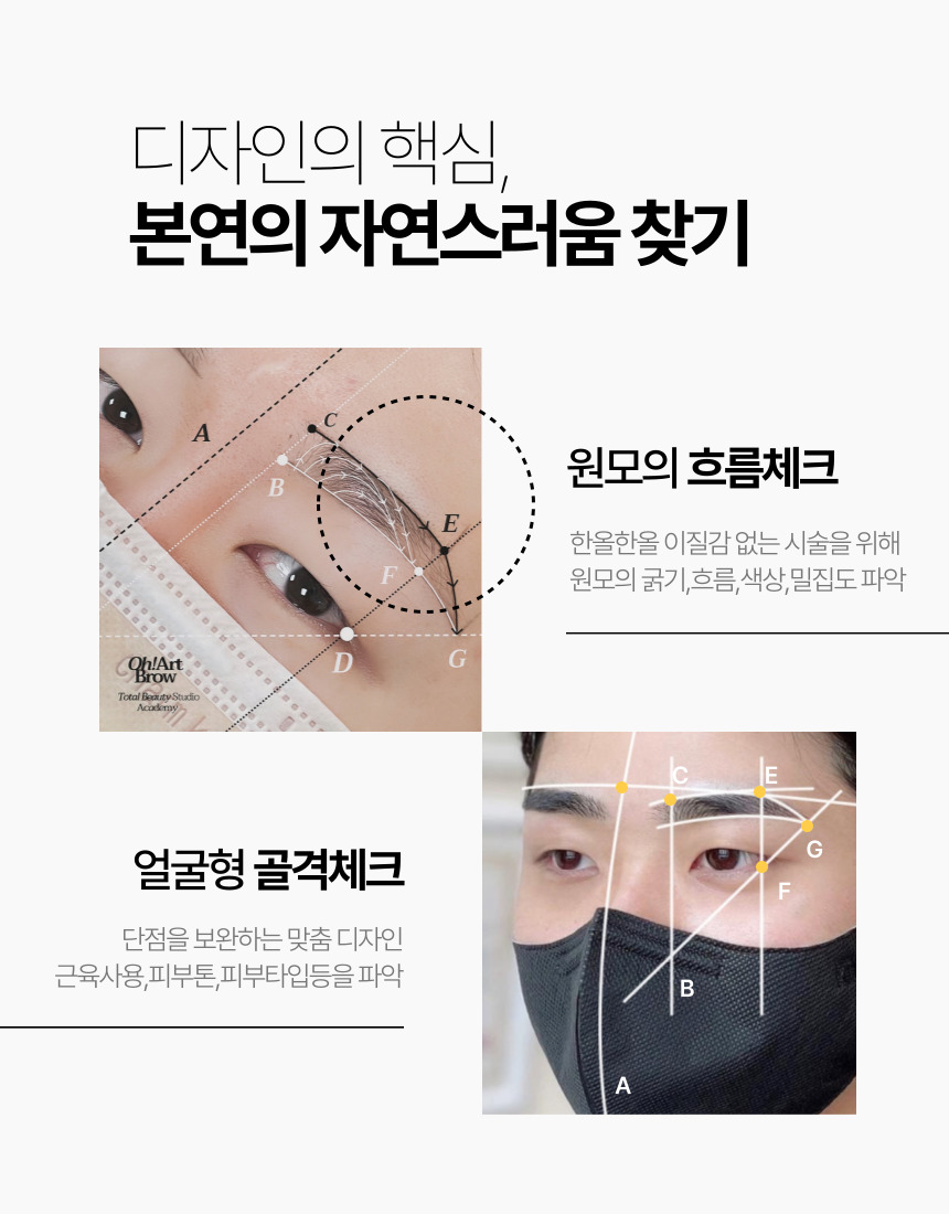 눈썹을 다듬고 오시면, 정확한 윤곽을 잡기 어려울 수 있어요.